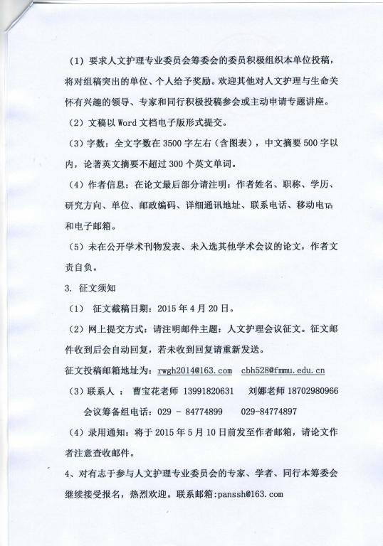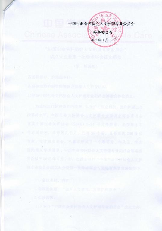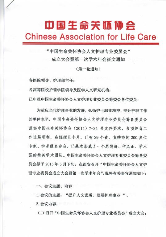 “中国生命关怀协会人文护理专业委员会”成立大会暨第一次学术年会征文通知