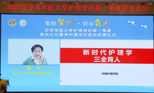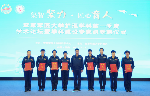 护理系郎红娟主任主持受聘仪式。她感谢校长对护理工作的肯定与鼓励,感谢学校党委对护理学科的关心与厚爱,感谢长期以来对护理学科建设与发展倾注心血的各位专家教授,相信在学校党委的坚强领导下,在各位专家教授的鼎力支持下,空医大护理人将以感恩之心、奋进之力,勇毅前行,从春天出发,向未来启航,为培养高素质新型军事护理人才,为建设一流护理学科、助推“百年名校”建设贡献智慧与力量。