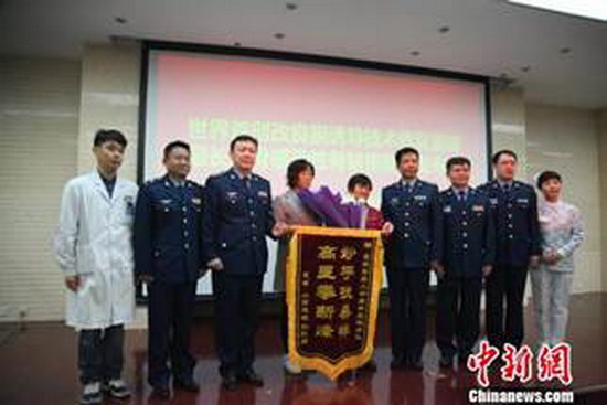 患者向医生献锦旗。 丛墨涵 摄