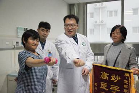 患者展示术后手臂康复情况。 丛墨涵 摄
