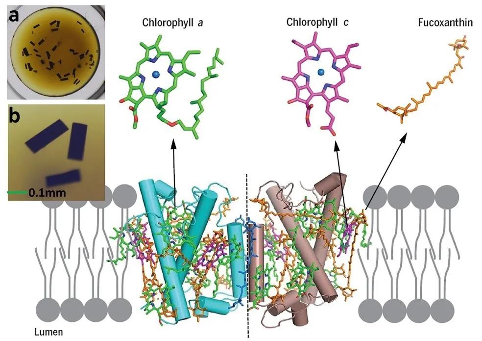 光合作用利用太阳光把二氧化碳和水转换成有机物和氧气,为地球上几乎所有生物的生存提供了能源和氧气。为了适应不同的光环境,光合生物进化出了各种不同的色素分子和色素结合蛋白,由此来最大程度地利用不同环境下的光能。硅藻是一种丰富和重要的水生光合真核生物,占水生生物原初有机物生产力的40%,或地球总原初生产力的20%,在全球的碳循环中发挥了重要作用。硅藻在水生环境下成功繁殖的重要因素之一是因为它含有岩藻黄素/叶绿素结合膜蛋白(FCPs),该色素蛋白使硅藻具有独特的光捕获和光保护及快速适应光强度变化的能力。