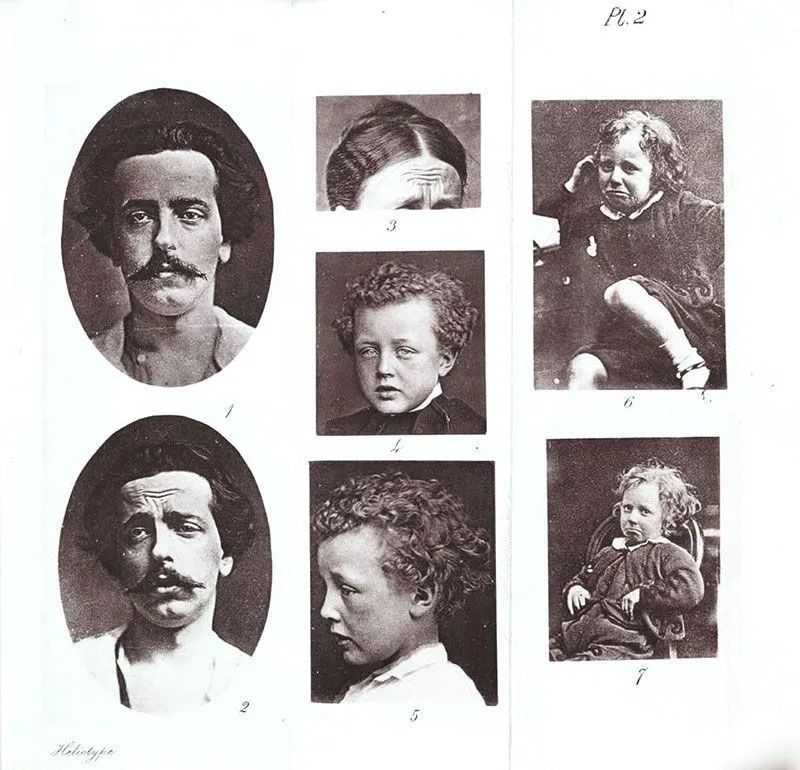 达尔文关于情绪的论述中囊括了大量摆拍的表情,比如这些努力模仿痛苦的受试者。来源:Alamy