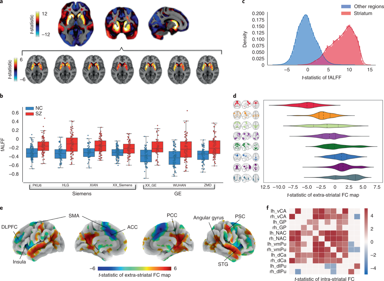 【摘要】中科院自动化所脑网络组研究中心与模式识别国家重点实验室、中科院脑科学与智能技术卓越创新中心刘冰研究员与蒋田仔研究员领衔,联合北京大学第六医院、墨尔本大学等国内外多家单位的研究人员组成的研究团队共同发展了一套基于多水平多组学的精神疾病研究框架。该研究首次发现了纹状体环路功能异常是精神分裂症精准诊疗的有效生物标记,并从该生物标记的稳定性与可泛化性、个体化精准诊断与疗效预测模型、及生物机制解析等方面进行了系统的阐述。2020年3月23日,《Nature Medicine》期刊在线发表了题为《A neuroimaging biomarker for striatal dysfunction in schizophrenia》的该研究论文。