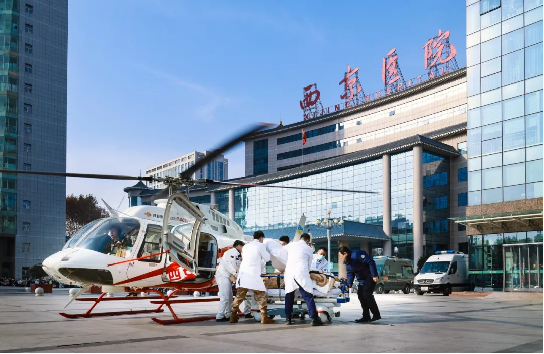 12月24日12时30分、14时50分,大学西京医院急诊广场,旋翼的轰鸣声在空中回荡,两架由陕西秦汉通用航空有限公司执飞的直升机依次降落。两名烧伤并伴有全身多处骨折的重症患者由500余公里以外,跨市紧急空运转送至西京医院并无缝衔接转入急诊科,紧张有序的“空地联动、生命接力”随即展开。