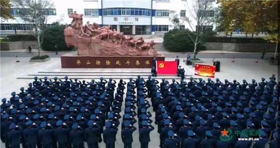 学员在华山抢险战斗集体雕塑前重温入党誓词