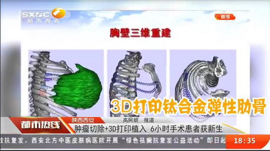 据唐都医院3D打印中心主任曹铁生介绍,经过认真研究病患情况,他们为王某在胸廓重建中,参考其对应肋骨的曲度等数据,并且采用3D打印钛合金弹性肋骨,从而能保证王某在术后的生活不受限制。