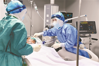 来到武汉后,张西京和战友们先后在武昌医院和火神山医院抢救危重患者百余名。ICU病房每天都在上演着生死时速。在张西京看来,紧急抢救就像百米冲刺,每一秒都与生命息息相关。