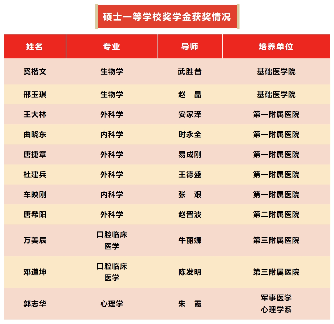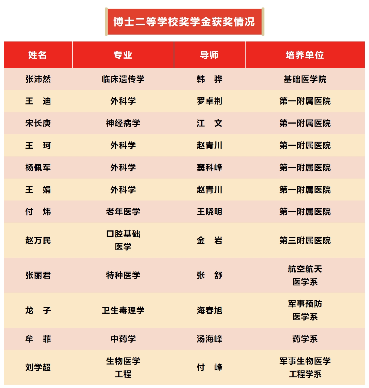 近日,空军军医大学确定了2022年学校奖学金入选者名单,按照“公开、公平、公正、择优”的原则,经个人申请、研究生大队初审、各培养单位推荐、研究生院审核、网上公示、校首长审批的程序,21名博士研究生、26名硕士研究生在全校研究生学员中脱颖而出,成功上榜!
